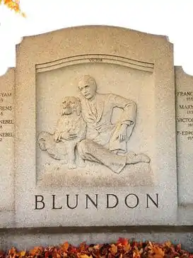 The Victor S. Blundon Monument is a 1936 public artwork by an unknown artist, located at Glenwood Cemetery in Washington, D.C., United States. "Victor S. Blundon Monument" was surveyed as part of the Smithsonian Save Outdoor Sculpture! survey in 1994. It serves as the final resting place for the Blundon family.[1]