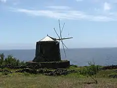 - Windmills of Corvo (Portuguese: Moinhos de Vento) – a group of three windmills located along the Caminhos dos Moinhos (Windmill Ways), constructed of volcanic rock in a conical form, with a wooden roof and octagonal sails, accessed by elevated doorways with volcanic lateral symmetrical steps[15][16]