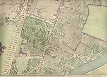 It was built by Henry Hope of the famous family banking company Hope & Co. of Amsterdam, from 1785 to 1789 as a summer home to replace the already quite impressive structure that he purchased there in 1769. From 1769 onwards, Henry Hope purchased more and more adjoining land in order to fulfill the plans he had for a great palace and picture gallery. During the five-year period that the construction took place, it was the talk of the town. No one had seen such a large summer home. To give an impression of the size compared to his contemporaries, see the map from 1827 showing the size of Welgelegen and its gardens (that go much further south than the map shows) compared to its neighboring summer homes of Amsterdam mayors and bankers.