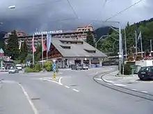 Villars overlooks the Rhône valley from an altitude of 1,258 metres (4,130 ft). The peak of Mont Blanc is clearly visible from parts of the village and from the village's more elevated ski area Bretaye (1,806 metres (5,930 ft)). That area is the center of the skiing network. It is accessible by the BVB railway (Chemin de fer Bex-Villars-Bretaye), featuring a cogwheel train, and by a gondola lift to the 'Roc d'Orsay' (1,952 metres (6,400 ft)). There are around 112 kilometres (70 mi) of skiing slopes in the skiing network of Villars with Gryon, Les Diablerets, and Glacier 3000.[1] The slopes on Glacier 3000 offer year round skiing. Furthermore, the ticketing system of Villars is part of the Magic Pass skiing area that covers 30 resorts in the larger area.[2]