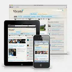 Virato was a search engine and aggregator for current news in Germany, which have achieved a high level of reach on the social web. The service bundles news from thousands of sources across the web (this includes blogs and webzines). All articles are weighted and scored based on their distribution across social networking platforms; which is how this service is categorized as a social news service. Additional services in this category include, but are not limited to, Reddit oder Digg.