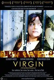 Virgin is a 2003 American drama film written and directed by Deborah Kampmeier in her feature directorial debut. Starring Elisabeth Moss, Robin Wright, and Daphne Rubin-Vega, the film follows a Baptist teenager who, after discovering she is pregnant with no memory of having had sex, comes to believe that she is carrying the child of God.[3]
