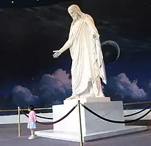 One of the focal points of the center is a life size replica of the Christus, with the accompanying statues of the original apostles carved out of Carrara marble.[48] This is the same marble used to create the Parthenon, Pietà, and David.[49] Behind the statues, Joseph Brickley painted a mural.[50]