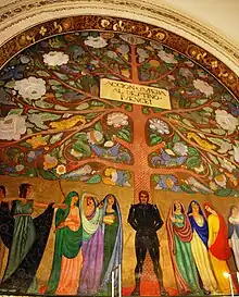 The Church produced the most important works of the seventeenth century. Among the important painters were Baltasar de Echave Ibia and his son Baltasar Echave Rioja, also Luis Juárez and his son José Juárez, Juan Correa, Cristóbal de Villalpando, Rodrigo de la Piedra, Antonio de Santander, Polo Bernardino, Juan de Villalobos, Juan Salguero and Juan de Herrera. Juan Correa, worked from 1671 to 1716 and reached great prestige and reputation for the quality of its design and scale of some of his works. Among the best known: 'Apocalypse in the Cathedral of Mexico', 'Conversion of St. Mary Magdalene', now in the 'Pinacoteca Virreinal' and 'Santa Catarina and Adam and Eve casting out of paradise', the latter located in the National Museum of Viceroyalty of Tepotzotlán.[37]