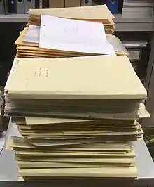 The entire ETH work is documented in full experimental detail in publicly accessible Ph.D. theses,[39][43][60][46][61][56][62][44][48][51][55][63] almost 1,900 pages, all in German.[67] Contributions of the 14 postdoctoral ETH researchers involved in the cobyric acid syntheses are mostly integrated in these theses.[12]: 1420 [64]: 1480 [13]: 12,38 The detailed experimental work at Harvard was documented in reports by the 77 postdoctoral researchers involved, with a total volume of more than 3,000 pages.[13]: 9,38 [note 11]