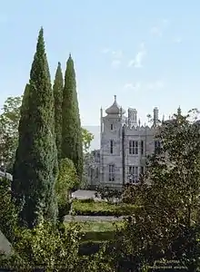 - ↑ The Alupka Palace (Ukrainian: Алупкінський палац; Russian: Алупкинский дворец) name was contrived during Soviet times[1] to remove mention to the Vorontsov noble family.