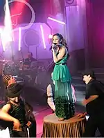 To promote W, Wanessa embarked on the W in Tour... Era Uma Vez. Directed by the actress Marília Pêra, the tour was inspired by Broadway musicals and told the story of Eva, a girl who dreams of being a singer, faces the jealousy of her ex-boyfriend and leaves everything to pursue her career.[29][30][31][32] At the time, the singer commented on the tour, saying that "it's a show that worked well and very different from what the Brazilian public is accustomed to seeing."[30] She also said in an interview with Terra that the tour "has many musical touches, unlike previous ones that showed a script with songs and choreography, this one brings a story".[33]