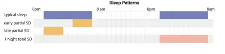 Responsiveness to sleep deprivation is also currently believed to be dependent on observable pattern in a person's regular sleep cycle, such as how quickly a person enters into a sleep cycle called rapid eye movement (REM) sleep.[31] Individuals with depression typically show abnormally short REM sleep onsets, meaning they enter into the REM sleep stage earlier in the course of the night than matched healthy controls. Individuals with depression who have short-latency REM sleep typically respond to sleep deprivation therapy more often than individuals with depression who do not show the typical short latency REM sleep pattern.[31]