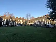 Walcot Square is an 18th century garden triangle in Central London. The "square" is in the London Borough of Lambeth and has a very rare triangular shape. Since 1968 in planning policy it is a Conservation Area.[1] Three rows of houses front its communal green, granted Grade II listed status under the statutory protective and recognition scheme in 1981 (the mainstream and initial category).[2]
