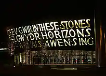 - ↑ "Calligraphy". Wales Millennium Centre. Archived from the original on 30 October 2007. Retrieved 2 March 2009.