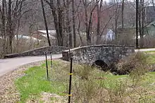 A concrete slab bridge carrying T-436 and Market Street over Walker Run was built in 1937. The bridge is 25.9 feet (7.9 m) long and is located 1.5 miles (2.4 km) north of US Route 11.[10] A road known as Denns Road also crosses the stream.[3]
