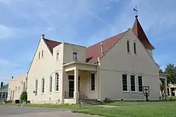 It was deemed significant as "one of the oldest remaining social institutions in the black community of Muskogee"; it "is the oldest African Methodist Episcopal Church and the second oldest black Protestant church in Muskogee". It is a one-and-a-half-story 90 by 44 feet (27 m × 13 m) church, built of brick laid in running bond, painted yellow.[2]