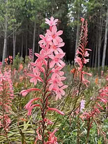 Watsonia (bugle lily) is a genus of plants in the family Iridaceae, subfamily Crocoideae. Watsonias are native to southern Africa (South Africa, Lesotho, Eswatini).[1] The genus is named after Sir William Watson, an 18th-century British botanist.[2]