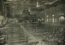 James Waugh was chairman of the school committee[28] from foundation until 1883. James Corrigan was the first of seven Headmasters in Wesley's first 35 years. The school struggled for numbers over some of this period. The Depression of the 1890s provided a particular challenge when Arthur Way was Headmaster, and came to a head in 1896 under Arthur Stephenson when enrolment dropped to 90 boys and closure was threatened.[29] Thomas Palmer's tenure as headmaster was curtailed early in 1902 after he was found to have embezzled more than £1,000 of the school's funds.[30]