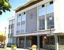 The council is based at the Guildhall in Marshall's Yard in Gainsborough, which is a modern office building within a retail development.[16] The council moved there in 2008 from its former headquarters, also called the Guildhall, on Caskgate Street in Gainsborough. The old Guildhall had been built in 1966 for the former Gainsborough Urban District Council, one of the council's predecessors. It has since been demolished.[17]