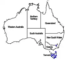 The species is widespread in Tasmania, occurring in wet eucalypt forests, along streams and in alpine areas.[1]