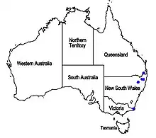 | Known range of Westringia sericea (in blue) | |