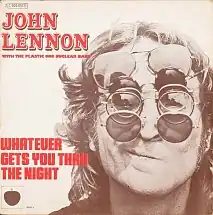 "Whatever Gets You thru the Night" is a song written by John Lennon, released as a single in 1974 on Apple Records, catalogue number Apple 1874 in the United States and Apple R5998 in the United Kingdom.[3] In the U.S. it peaked at No. 1 on all three record charts: Billboard Hot 100, Cashbox, and Record World,[4] and at No. 36 in the UK.[3][5] It was the lead single for Lennon's album Walls and Bridges; in the UK the single was released on the same day as the album. "Whatever Gets You thru the Night" was Lennon's only solo No. 1 single in the United States during his lifetime,[6] making him the last member of the Beatles to finally reach the top of the charts.[7][8][9] In Canada, the single spent two weeks at No. 2, and became the 30th biggest hit of 1974.[10]