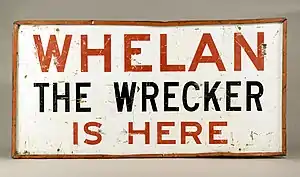 - ↑ "WHELAN THE WRECKER IS HERE" (1932, January 23). The Argus (Melbourne), p. 6. Retrieved February 22, 2014