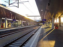 Wien Hauptbahnhof, Vienna Central Station[4][5] or Vienna Main Station [6][lower-alpha 1] is the main railway station in Vienna, Austria, located in the Favoriten district.[9] It became fully operational in December 2015, linking major railway lines from the north, east, south and west, and replacing the old Wien Südbahnhof terminus.[10] With 268,000 daily commuters it is Austria's busiest long-distance railway station.[3] Aside from being voted "Austria's most beautiful railway station" (six times in total; five years in a row), it was also second in Consumer Choice Center's ranking of "Top 10 Railway Stations for Passenger Convenience in Europe".[11]