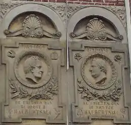 Gable stones for Eeltsje Hiddes Halbertsma and his brother, Justus, at their birthplace in Grou