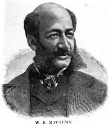 William E. Matthews (July 1845 - May 2, 1894) was a lawyer, financier, and civil rights activist in Baltimore, Maryland and Washington DC. He was active in promoting education for freedmen during and after the Civil War. He was very successful as a real estate and financial broker and was an important leader in African American society in the 1860s-1890s.