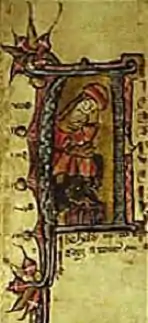"Langland's Dreamer": from an illuminated initial in a Piers Plowman manuscript held at Corpus Christi College, Oxford