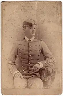 During the American Civil War, Collins was appointed colonel of the 7th Ohio Cavalry. However, this regiment never completed its muster and was therefore consolidated with the 6th Ohio Cavalry.[4] Collins was now named lieutenant colonel of the 6th Ohio Cavalry with William Lloyd as colonel.[5] Collins was resentful his regiment had been absorbed into another and used his political influence to have his original four companies transferred to an independent command. Ordered to St. Louis MO in February 1862, Collins' command was officially declared the 1st Ohio Independent Cavalry Battalion.[6] Collins served under General James Craig protecting the Overland Mail routes in Nebraska Territory. In June 1862, four additional companies were recruited at Camp Dennison to be added to the 1st Ohio Cavalry Battilion. Before Collins could unite the two battalions, the new recruits were mobilized for the defense against Morgan's Ohio Raid. Also during this time General Craig ordered troops to establish a military post in northern Colorado Territory. Craig named the post Camp Collins in honor of the Ohio cavalry officer.[7] The two Ohio cavalry battalions were joined to create the 11th Ohio Cavalry and on September 20, 1862 Collins was appointed lieutenant colonel, the de facto commanding officer. Lieutenant Colonel Collins commanded Fort Laramie from 1863 to 1864. In August, he authorized the establishment of "Fort" Collins the previous establishment having been destroyed by a flood. Collins commanded the Western Sub-district of the District of Nebraska from 1864 to 1865.[8]