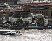 The reconstructed Globe Theatre on the south bank of the River Thames in London