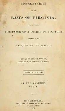 Using his father St. George Tucker's copies of Blackstone's Commentaries as the basis for his instruction, Henry Tucker lectured three days each week and gave his students regular quizzes to test their knowledge. In addition, he prepared, edited and published Tucker's Notes on Blackstone's Commentaries for the Use of Students. Tucker's Commentaries provided the current state and federal law on each point covered by Blackstone, and was widely used because it focused on United States common law rather than English legal and political theory.[3]