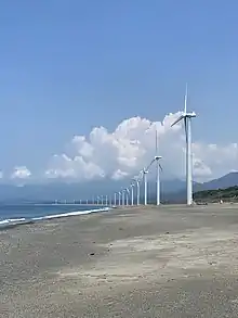 The Burgos Wind Farm in Ilocos Norte is currently the largest wind farm in the Philippines, powering locals with 150MW of energy. In October 2016, the Provincial Board of Ilocos Norte unanimously designated Ilocos Norte as a “clean, green, and coal-free province”.[7] Currently, Ilocos Norte's Burgos Wind Farm is the largest of its kind in Southeast Asia, providing approximately 370GWh of energy and offsetting 200,000 tonnes of CO2 emissions annually.[8] The Burgos Wind Farm consists of 50 V90 wind turbines each with a capacity of 3MW, making it a 150MW wind farm.[8] Since being commissioned in 2014, the Burgos Wind Farm has won the Asia Power Engineering International Best Renewable Energy Project in 2015; it has also been nominated for the Philippine Government's feed-in-tariff incentive scheme which allowed the project to receive government subsidies.[8][9]