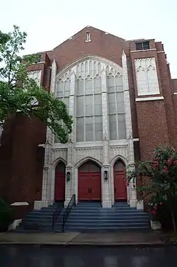Quapaw Quarter United Methodist Church, formerly the Winfield Methodist Church is a historic church at 1601 Louisiana Street in Little Rock, Arkansas. It is a two-story brick building with Gothic Revival style, designed by the prominent architectural firm of Thompson and Harding, and built in 1921. Its main facade has three entrances below a large Gothic-arch stained glass window, all framed by cream-colored terra cotta elements. A square tower rises above the center of the transept.[2]