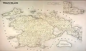 The island was part of the traditional hunting lands of the Tyendinaga Mohawk people and the original name of the island is Kawehnóhkwes tsi kawè:note ("Long Island Standing").[3] The name is often given as "Ganounkouesnot", but this name makes no sense in the Tyendinaga Mohawk language. In 2021, the Township of Frontenac Islands voted officially to accept the name of Kawehnóhkwes tsi kawè:note and added it to the signs welcoming visitors to Wolfe Island.[4] It was called Grand Island (Grande île) by the French. In a proclamation by the Lieutenant Governor of Upper Canada John Graves Simcoe on 16 July 1792, the island was renamed from Grand island to Wolfe island,[5] after British General James Wolfe.[6]
