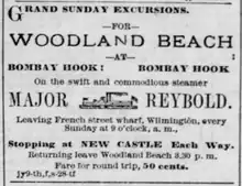 - ↑ "Woodland Beach". The Morning News. Wilmington, Delaware. June 21, 1881.
