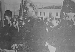 While the Sharlo's leadership was terminated, the vestiges of his policy among part of the local communist activists were preserved. After the arrest of Lazar Koliševski in November, the new executive body of the Macedonian Regional Committee continued to share Shatorov's pro-Bulgarian ideas and re-established close contact with the BCP.[66] Bane Andreev of Veles, a new party secretary for Macedonia, expressed this same ideology. He thought that the Macedonian people believe in Bulgaria's role as liberator and that no Macedonian wants to fight against the Bulgarian soldiers. That the Macedonians should respond positively to the mobilization call being carried out by the Bulgarian authorities and join the Bulgarian army.[67] Tito did not agree with that. During the spring of 1942 Andreev was arrested by Bulgarian police.[68] As a result, a factionalist struggle between the pro-Bulgarian and the pro-Yugoslav lines exacerbated. Thus Cvetko Uzunovski created a provisional regional committee that tried to take over the pro-Bulgarian faction, but without much success.[69] This policy changed from 1943 with the arrival of Tito's envoy Montenegrin Serb Svetozar Vukmanović-Tempo.