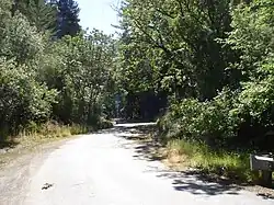 A post office was established at Wrights in 1879, and the railroad was completed in 1880 from Los Gatos, along the Los Gatos Creek, to Wrights Station, about a mile east of Patchen.[8] During the construction of the main railroad tunnel (between Wrights and Laurel), a strong flow of natural gas was encountered, and an explosion followed, which resulted in the death of thirty-two Chinese workers. The main leak was subsequently stopped, but gas continued to escape in small quantities. The extent of the supply was unknown.[9] U.S. Geological Survey maps from 1919 show the railroad running from Los Gatos to Santa Cruz, with stops in Alma, Wrights, Laurel, Glenwood, Clems, Zayante, Eccles, Felton, and Scotts Valley. There were a series of tunnels, including a 6,200-foot (1,900 m) tunnel between Wright and Laurel, most of which were later blocked when the railroad ceased operations. Wrights itself had a benchmark elevation of 896 feet (273 m).[10]
