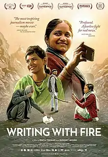 Writing with Fire is a 2021 Indian documentary film directed by filmmakers Sushmit Ghosh and Rintu Thomas about the journalists running the Dalit women led newspaper Khabar Lahariya, as they shift from 14-years of print to digital journalism using smartphones. It is the first Indian feature documentary to be nominated for an Academy Award for Best Documentary Feature.[3]
