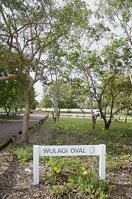 Wulagi is one of Darwin's northern suburbs east of Lee Point Road and was built after Cyclone Tracy struck Darwin, Northern Territory in 1974. The name originates from an Aboriginal tribe on the Blyth and Cadell Rivers in Central Arnhem Land.[2] Development of the area was primarily during the 1970s and 1980s. Like the neighbouring suburb of Anula, Wulagi is largely built on a plateau with a downhill slope on its east side. The suburb was designed as a low-density, low-traffic suburb with pedestrian access facilitated by a number of laneways and a 'green-belt' that runs from Wulagi Primary School and the central shopping area westwards. Wulagi Primary School is an open-plan public school centred on a library space.[3] A co-located Early Learning Centre caters for children from 6 weeks to 5 years.