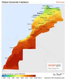 - The desert location has sunshine with the third highest Global Horizontal Irradiance (GHI) in North Africa.[4][10]