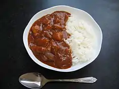 The first recorded print appearance of the term "yōshoku" dates back to 1872.[2] In the past, the term was for Western cuisine, regardless of the country of origin (as opposed to French, English, Italian, etc.), but people became aware of differences between European cuisines and yōshoku in the 1980s, due to the opening of many European restaurants serving more authentically European (non-Japanized) food.[3]
