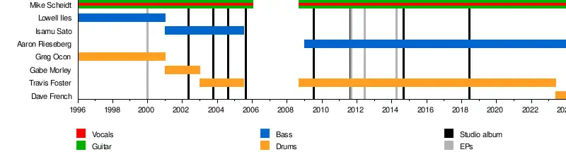 | Past members | Lowell Iles Greg Ocon Gabe Morley Isamu Sato Travis Foster |
