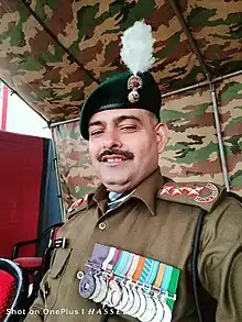 ![]() Captain Yadav during the rehearsal of the Army Day Parade 2024 in Lucknow, wearing his PVC Medal (left side) | |