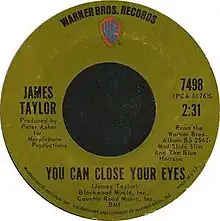 Richie Havens covered "You Can Close Your Eyes" on his 1976 album The End of the Beginning.[21] Maureen McGovern covered "You Can Close Your Eyes" as the closing track of her 1992 album Baby I'm Yours.[22] Sheryl Crow covered it on her 2003 album Artist's Choice: Sheryl Crow.[23] The a cappella group the King's Singers covered the song on their 2008 album Simple Gifts[24] and The Young'uns covered it a cappella on their 2012 album When Our Grandfathers Said No.[25]