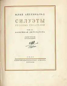 A 1923 edition of Aykhenvald's Silhouettes of Russian Writers