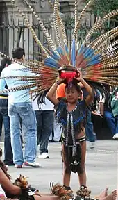 Since 1982, due to efforts to revitalize the city center, the Zócalo has become the scene of a number of artistic and cultural events. There are daily impromptu shows of Aztec dancers dancing to drums, wearing feathered headdresses and anklets made of concha shells.[3] On a grander scale, some examples of events held here recently are Spencer Tunick's photo shoot[30] where nearly 18,000 Mexicans bared all for the artist, surpassing the record set earlier in Barcelona[31][32] and artist Gregory Colbert's Ashes and Snow Nomadic Museum.[33] One curious event was the building of a temporary ice-skating rink of about 3,200 m2 in the middle of the Zócalo, for use by the city's residents for free in the winter of 2007.[34] Since then, the rink has been repeatedly built up for several winter seasons.