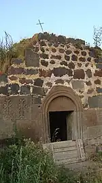 Historical heritage sites in and around the village include medieval tombstones, khachkars from between the 12th and 17th centuries, a 12th/13th-century castle and chapel, the church of Surb Grigor (Armenian: Սուրբ Գրիգոր, lit.'St. Gregory') consecrated in 1274, the church of Surb Sargis (Armenian: Սուրբ Սարգիս, lit.'St. Sargis') consecrated in 1279, a 13th-century bridge, and the 17th-century church of Surb Astvatsatsin (Armenian: Սուրբ Աստվածածին, lit.'Holy Mother of God').[1] Two of the four churches of Tsar of as well as two nearby monasteries have been destroyed. Armenian churches, monasteries and cemeteries in the village started to be destroyed by Kurds at the end of the 19th century, and the destruction continued on a larger scale during the Soviet period, especially during the 1940s and 1950s.