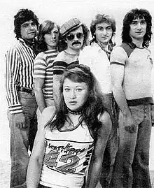 The first lineup of Zebra featured, besides Đelmaš, Bata Radovanović (keyboards), Dušan Lazarević (bass guitar), Miroslav Stamenković (trumpet), Karolj Burai (saxophone) and two female members, Anka Lazarević (vocals) and Ana Merlini (guitar).[1] During the following years, a large number of musicians passed through the band, including guitarists Nenad "Nele" Stamatović (later a member of the bands Bulevar and Bajaga i Instruktori and a solo artist) and Željko Nikolić (later the leader of the band Roze Poze).[1]