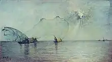 His important works such as "Net Casting" and "View of the Bridge" are at Jiangsu Fine Arts Museum.[3]