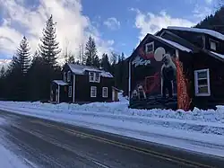 At nearby Giegerich (formerly called Bear Lake), Gilbert Malcolm Sproat laid out a townsite at the east–west summit divide in 1892. The modest hotel was destroyed by fire, rebuilt, and taken over by Robert (Scottie) Mitchell,[10][11] who opened a store in 1911.[12] Mitchell was the only postmaster 1915–1932, the post office being named Zincton, a descriptive applied to the general area.[13][14] A rare example of a postal cancellation has sold for $675.[3]