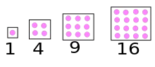 Les carrés parfaits forment une suite infinie de nombres entiers (suite A000290 de l'OEIS) de densité nulle, dont les différences entre termes consécutifs forment la suite des entiers impairs, et dont la série associée est définie par les sommes partielles :
